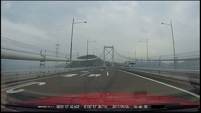 本州の下関から関門橋を通過して九州へ。